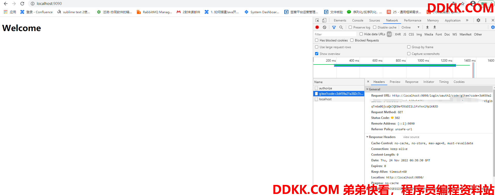 输入localhost:9090时,由于所有路径都需要认证,所以被过滤器拦截,然后重定向到gitee登录页面