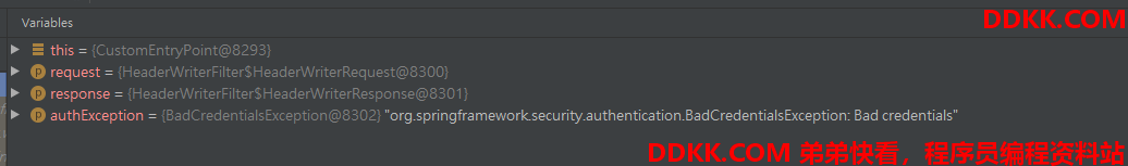 你会发现这种配置方式当你请求失败导致401时,例如密码错误,由于HttpBasic会识别你的错误方式导致抛出两次异常,第一个是因为你的错误请求原因抛出的异常,例如密码错误就是org.springframework.security.authentication.BadCredentialsException: Bad credentials