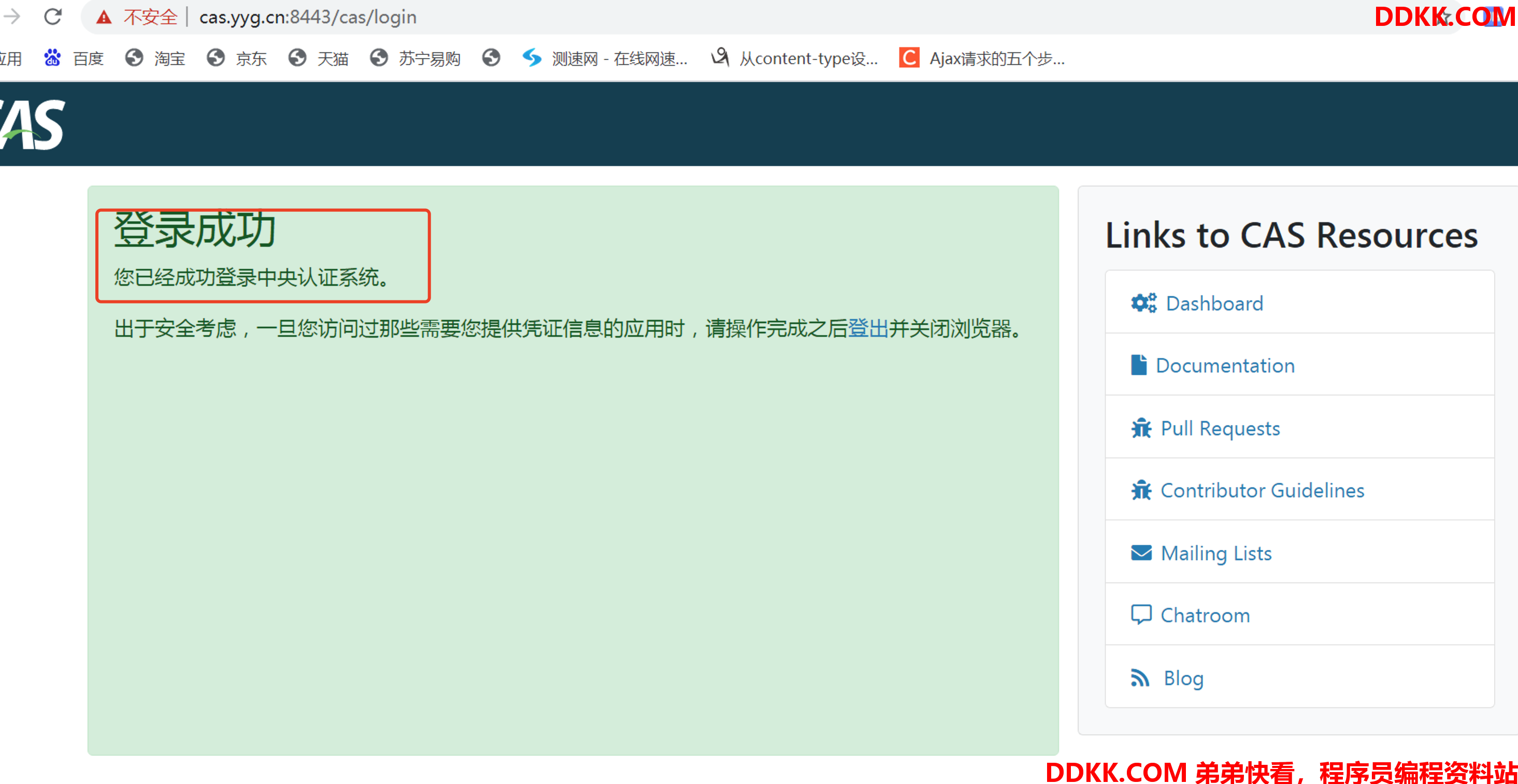 如果出现登录成功的页面,就说明我们的CAS Server服务端已经配置成功,后面就可以把该项目作为认证中心,来接收CAS Client项目发来的认证请求了。