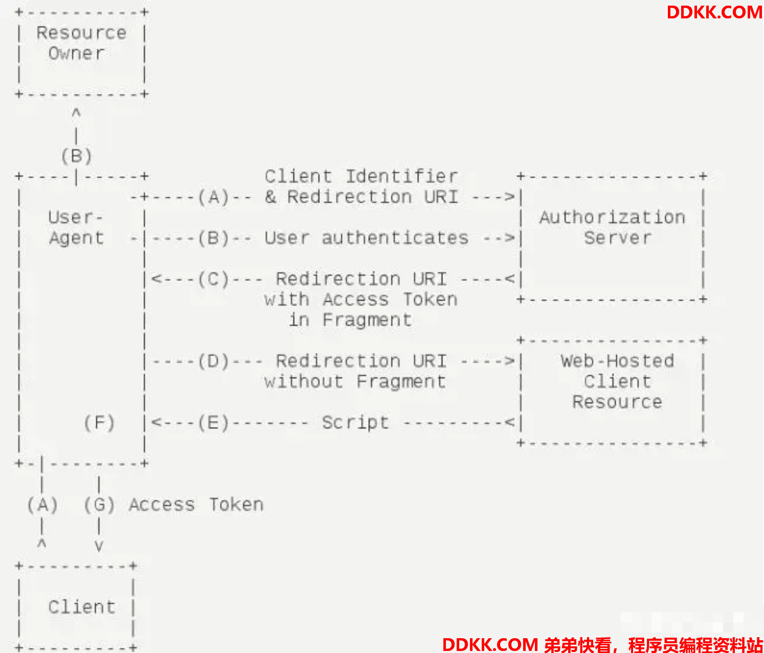 简化模式(implicit grant type),有些 Web 应用只有前端,没有后端,这时就只能将令牌储存在前端浏览器中。所以在RFC 6749中还规定了第二种授权方式,允许直接向前端颁发令牌,因为是直接在浏览器中向认证服务器申请令牌,跳过了"授权码"这个步骤,所以称为 "隐藏(授权码)式implicit",或者被称为隐式授权模式。