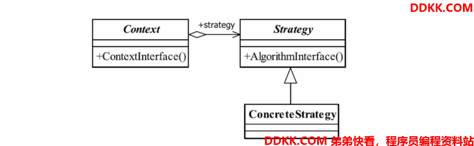 Strategy抽象策略角色:策略的抽象,通常为接口,定义每个策略或算法必须具有的方法和属性;
