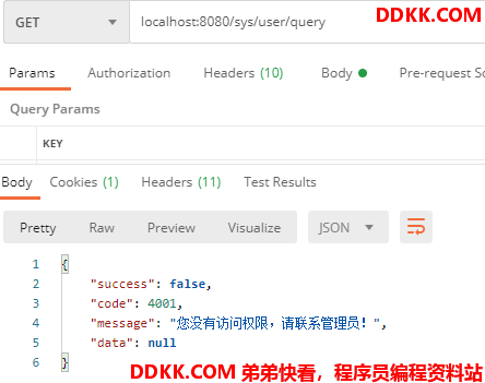 访问localhost:8080/sys/user/query 没有权限