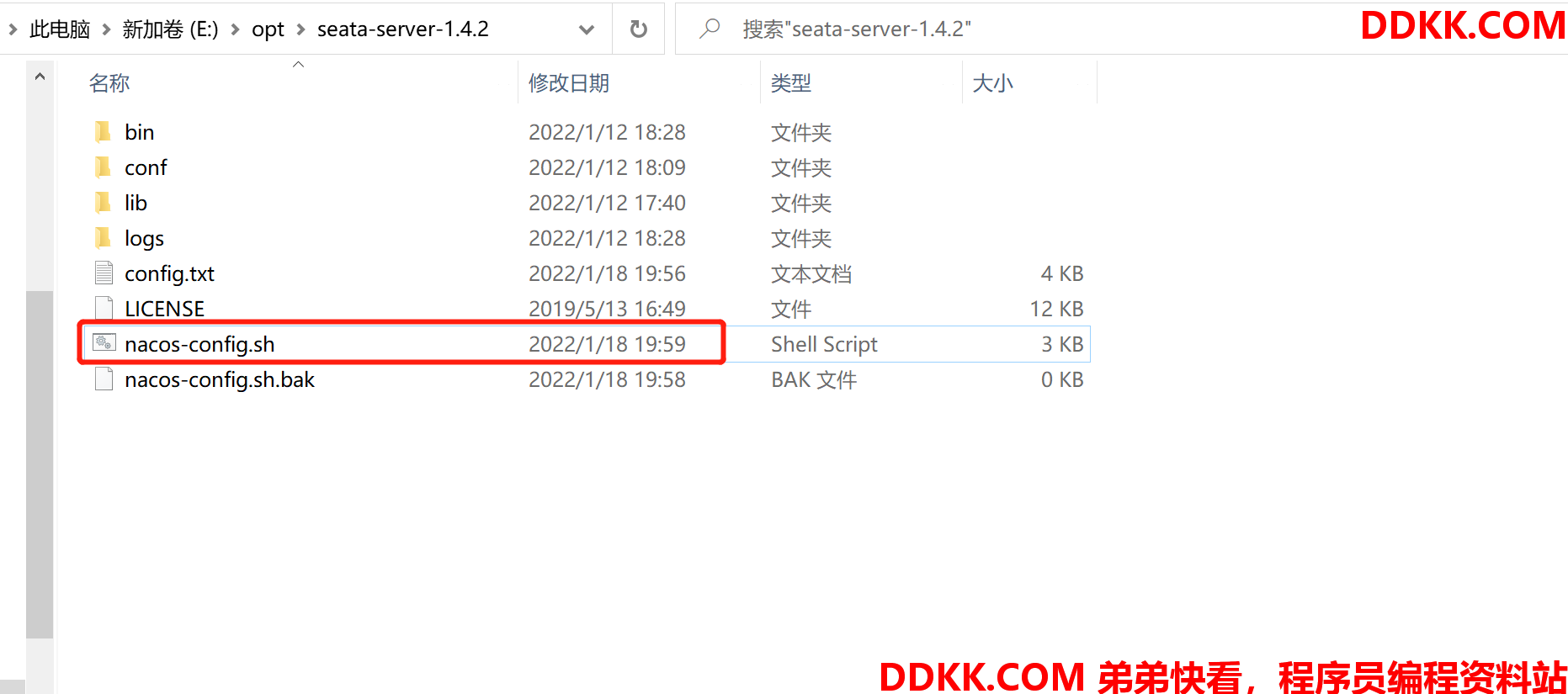 2、 我们需要在seata-server-1.4.2文件夹中新建一个脚本文件nacos-config.sh,然后把脚本内容复制进去;